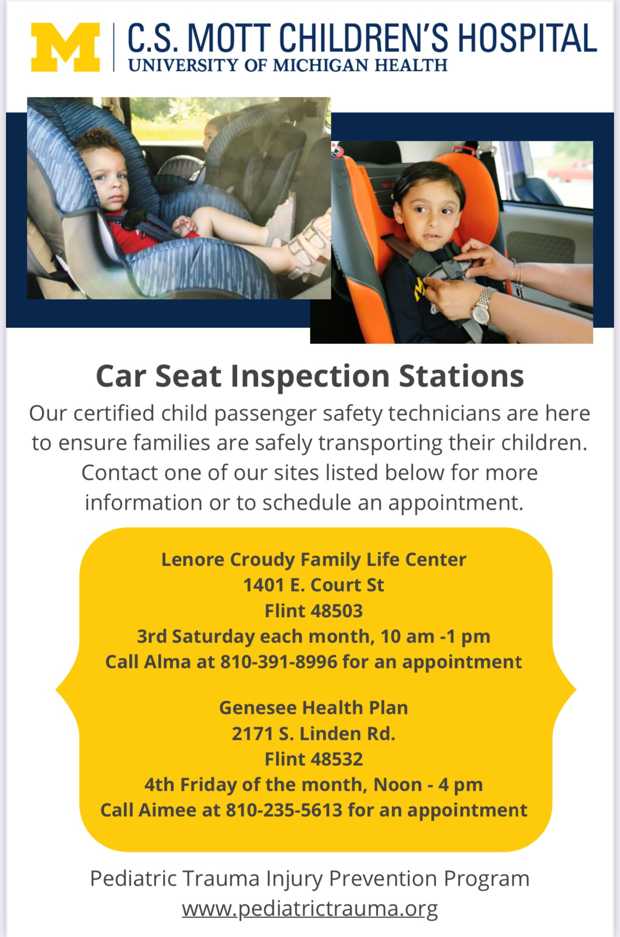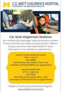 Are your little ones ready to ride? Drive confidently, knowing your child is safe in their car seat by scheduling an inspection! Every fourth Friday of the month, from 12-4p.m., GHP will be a car seat inspection station; call (810) 235-5613 to schedule an appointment.